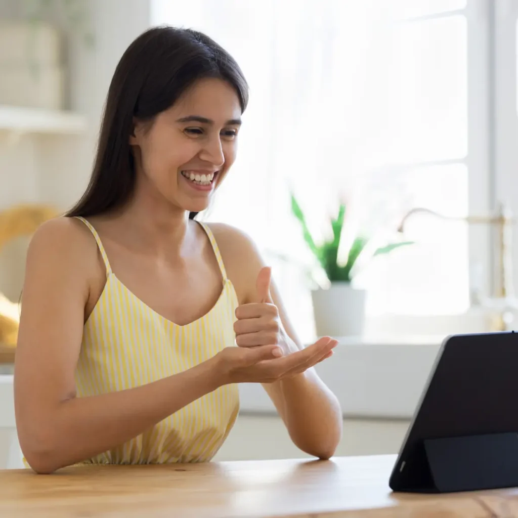 Rogervoice vous permet de téléphoner en vidéo grâce à un interprète en LSF diplômé et formé à la visio-interprétation.